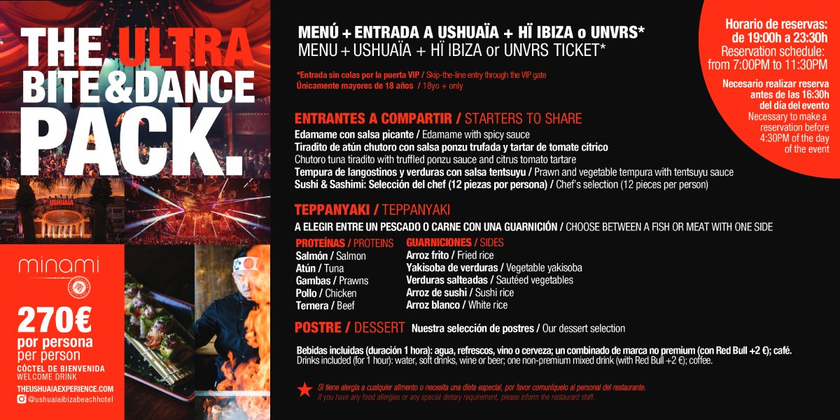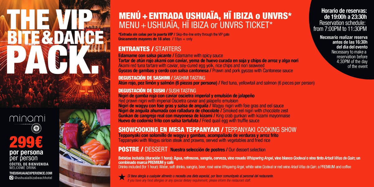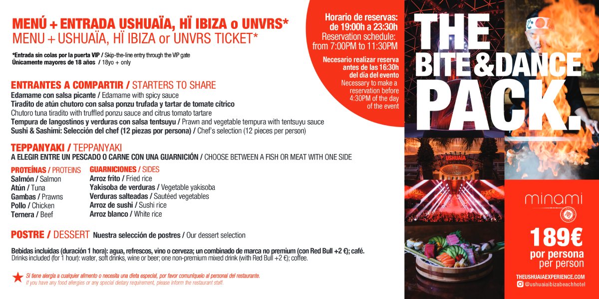 Die exotischste Speisekarte, die Du im Ushuaïa Ibiza Beach Hotel vorfinden kannst, überrascht Dich in jeder Saison mit suggestiven avantgardistischen Kreationen, sowohl in den Vorspeisen als auch in den Hauptgerichten. Probiere Zutaten aus fernen Ländern, wecke Deinen Gaumen und widerstehe nicht, nach Sushi und Sashimi-Klassikern zu fragen. Und lasse etwas Appetit übrig für die leckersten Desserts.