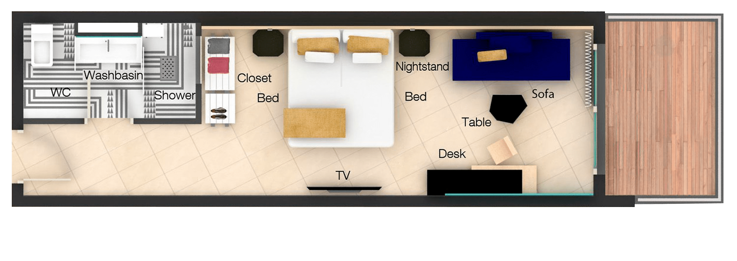 39,25,Two single beds (100 cm each) that can be turned into a double bed (upon request).